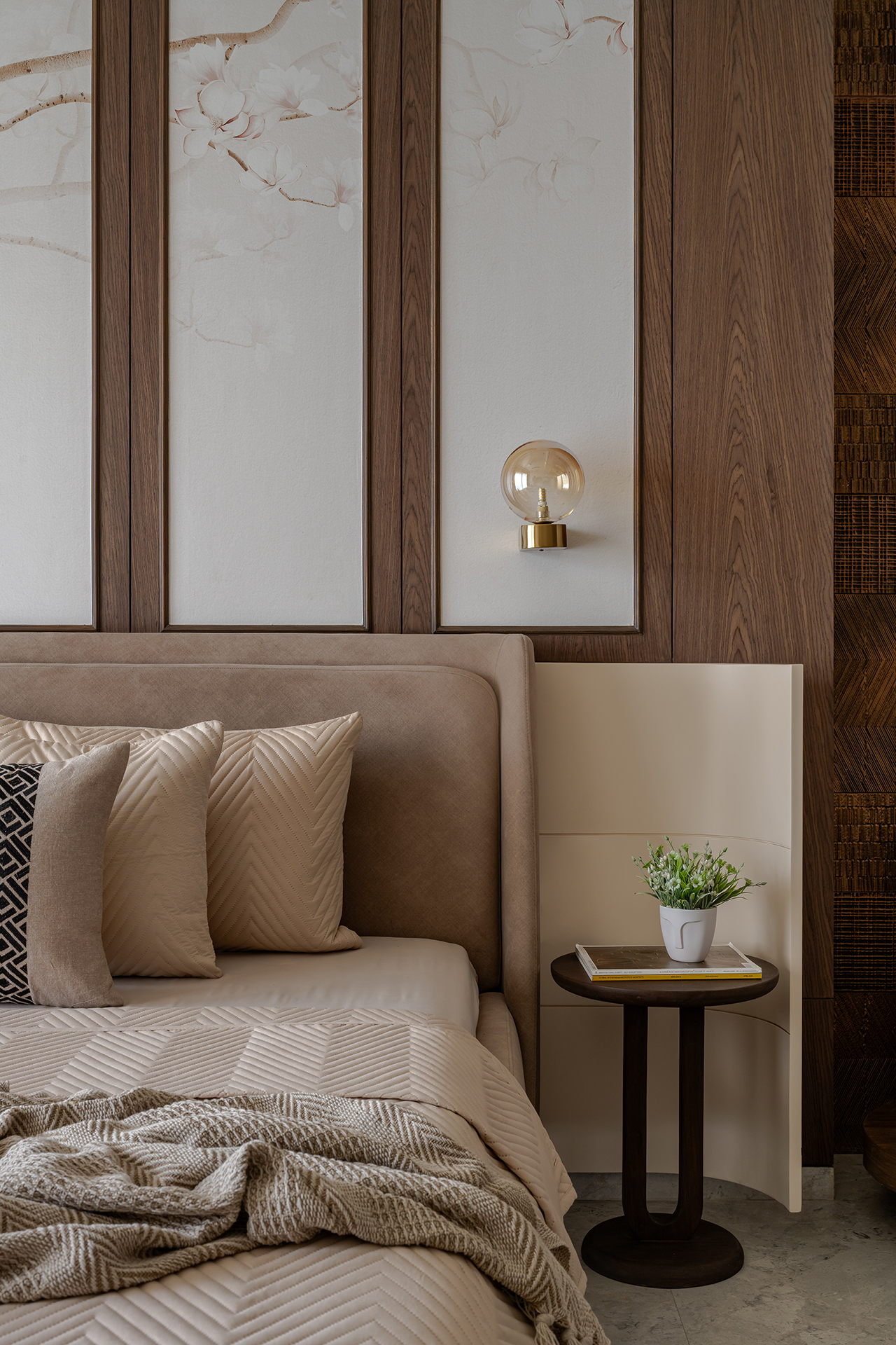 The main living areas are located on the first floor, featuring a spacious living room, triple-height dining area, mandir, kitchen, utility spaces, and a day bedroom. The second floor includes three bedrooms—two master suites and a guest room—while the third floor serves as a private retreat with a master bedroom, seating area, and home theatre.