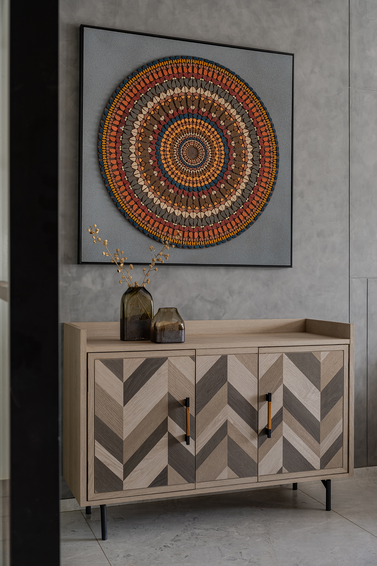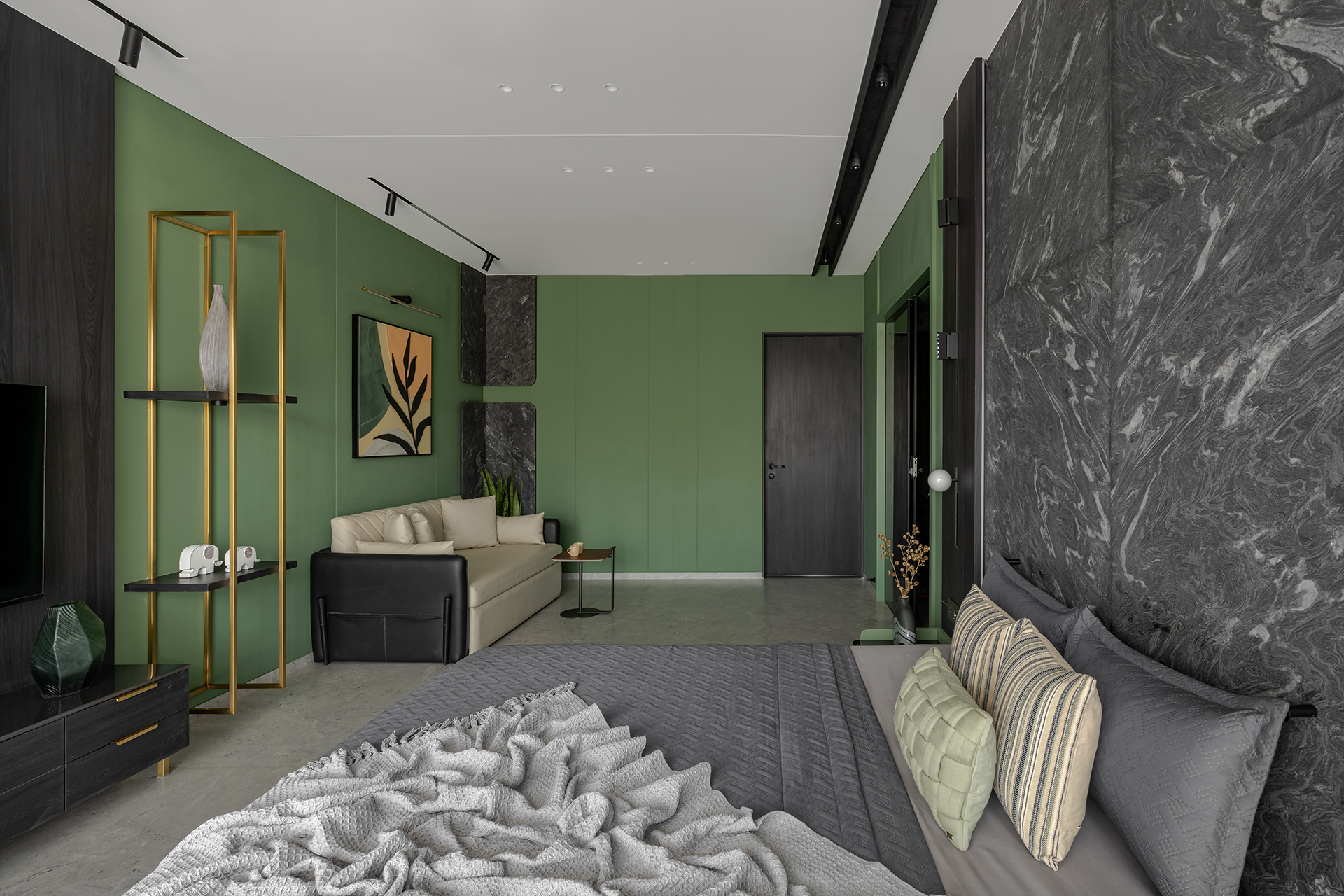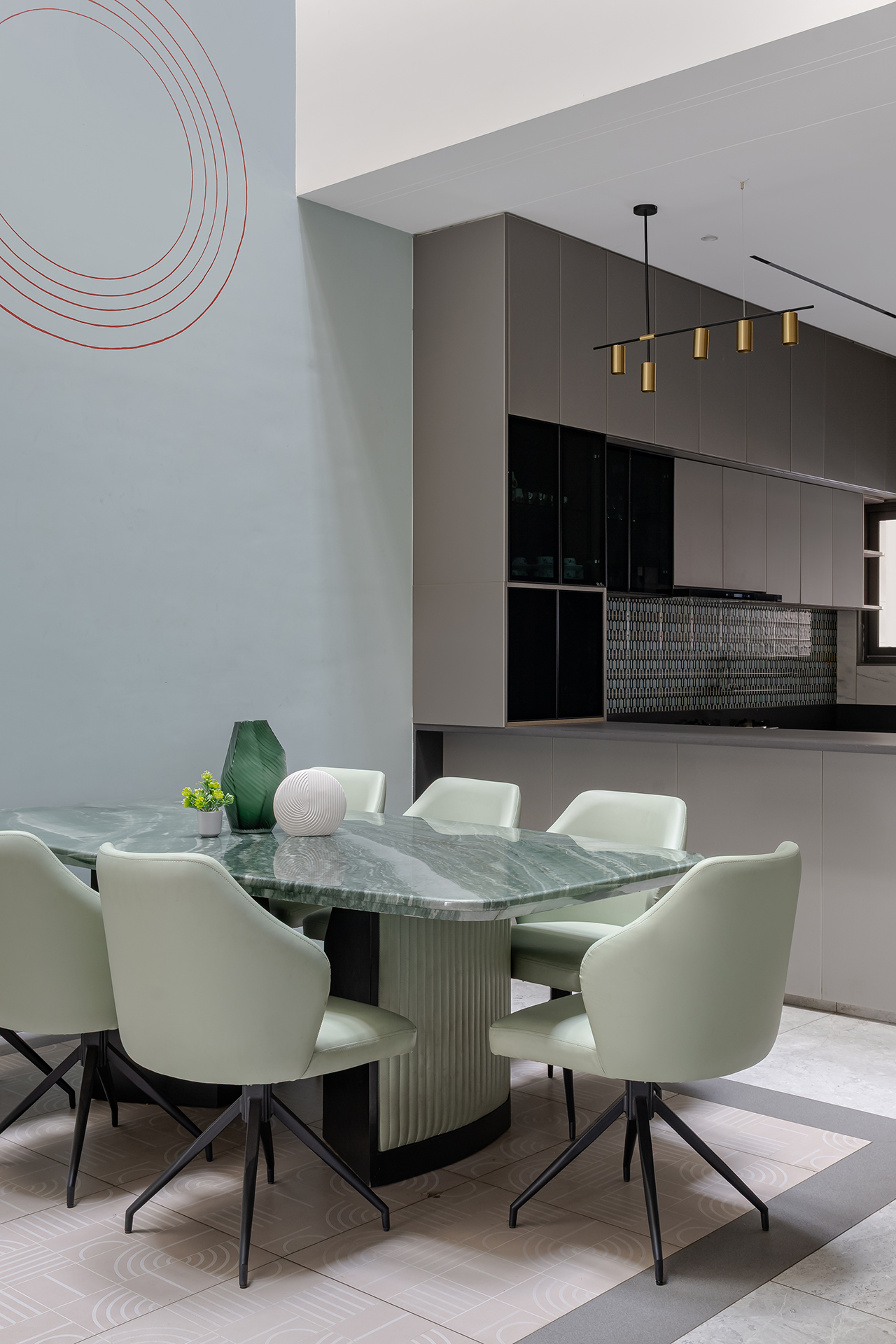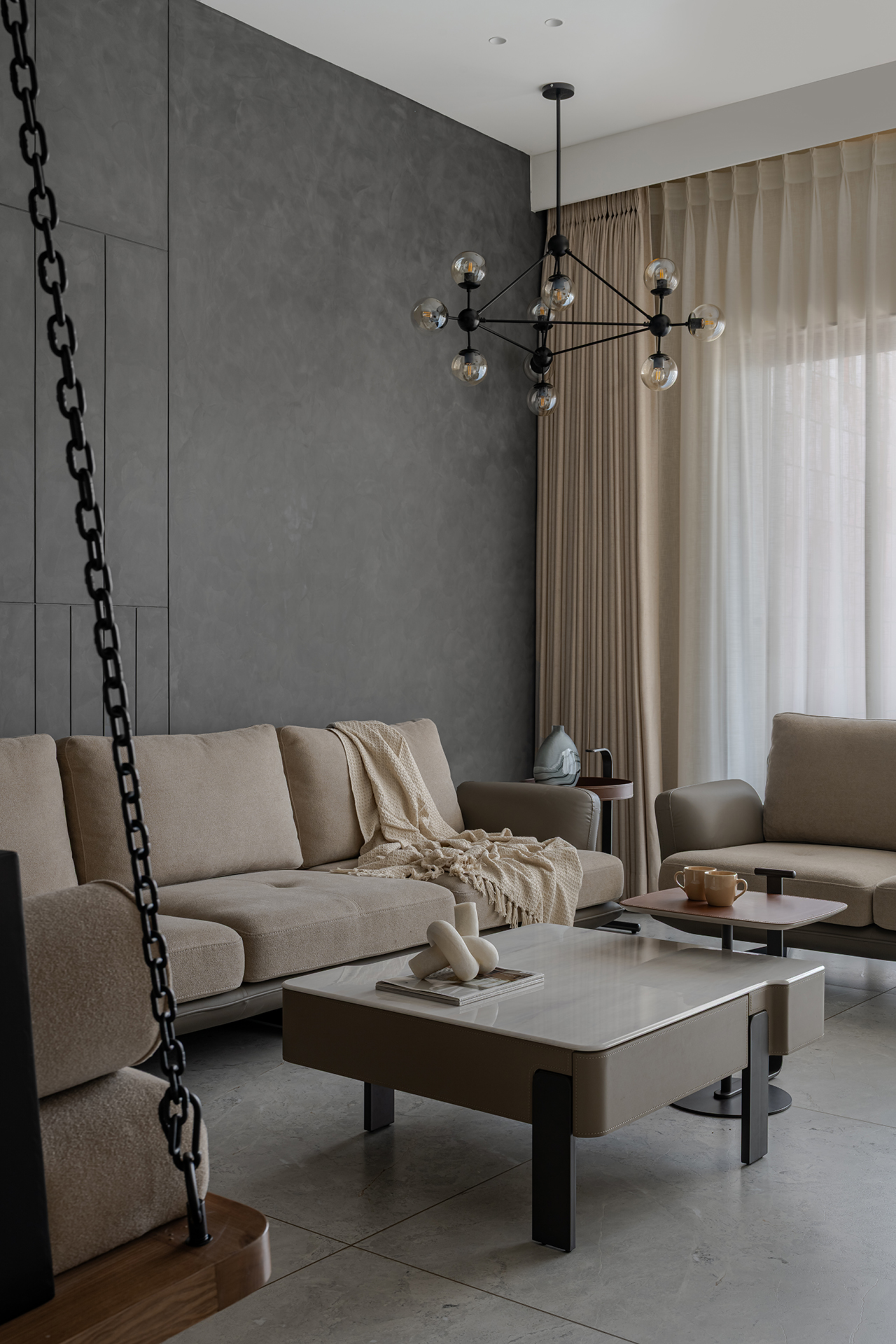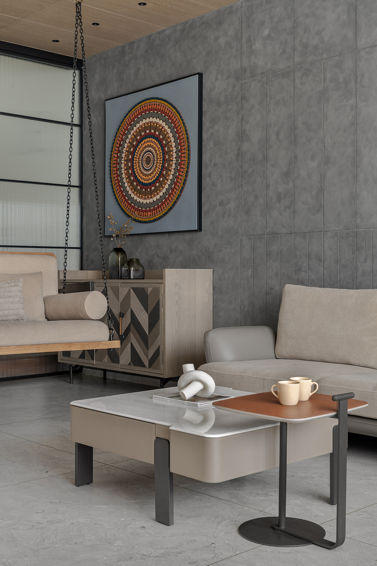 The north-facing façade maximizes street views and natural light with large openings and balconies. A central triple-height atrium with a skylight illuminates the interior, while rear balconies minimize direct sunlight, ensuring a bright, comfortable living environment.